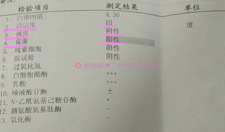 如图说明该患者的清洁度为Ⅲ度,高于正常值;滴虫检测为正常,但霉菌检测为“阳性”,考虑为霉菌性阴道炎。霉菌性阴道炎较为顽固,需及时与坚持治疗。